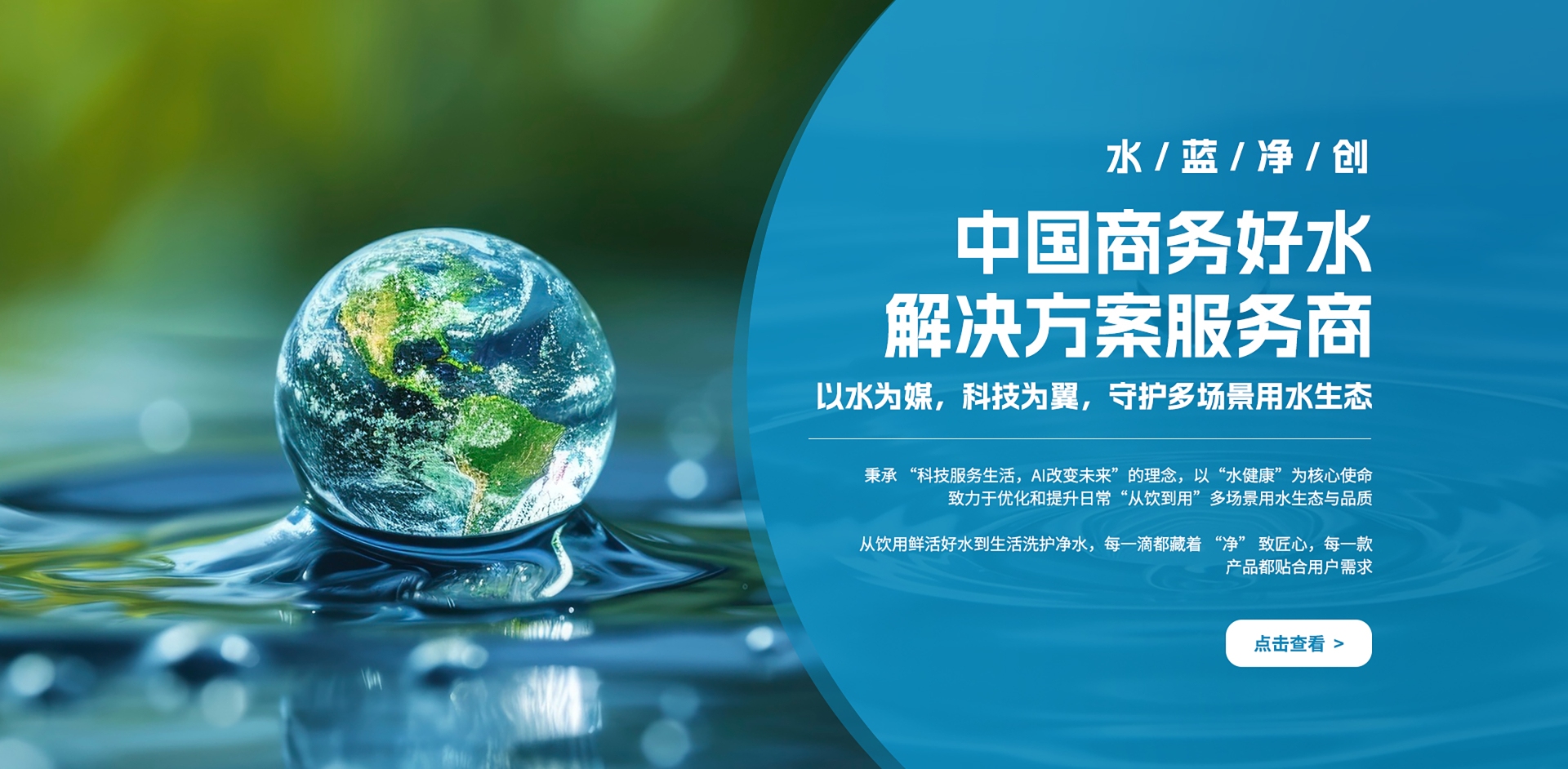 水蓝净创(上海)健康科技有限公司,是一家“专注水健康生态领域,以AI与科技为核心支撑”的创新型企业。秉承“科技服务生活,AI改变未来”的理念,聚焦商务场景用水健康需求,打造贴合商务特性的饮水解决方案。产品兼具微分子、弱碱性、活性水、矿物质等特点,口感甘甜绵柔,致力于通过专研技术优化 “从饮到用” 的用水品质,为商务用户及场景运营者提供品质用水的选择。