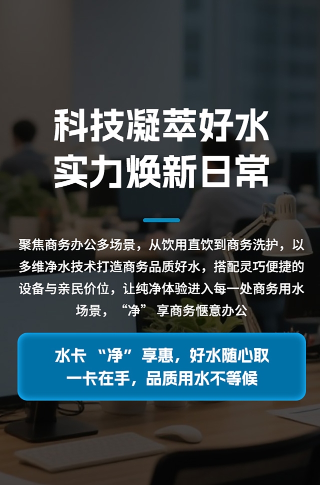 会员1.37 元 / 5L 的定价 + 水卡消费模式,打破品质水高价壁垒,让更多商务场景轻松享受品质体验。